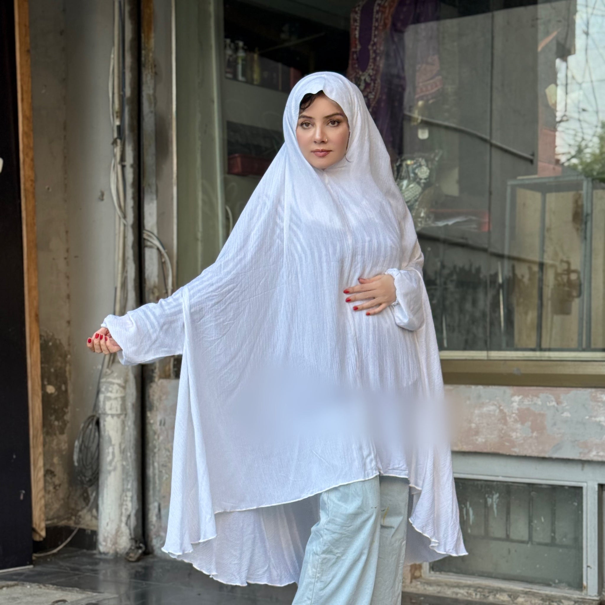 Step into your sacred space with grace and modesty wearing the Elegant White Namaz Chadar by Haya by Rabi. Thoughtfully designed with a graceful fall and full coverage, this prayer chadar is made from premium imported linen—lightweight, breathable, and perfect for daily salah.